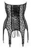 • Schnitt & Material: Trägerloses Strapshemd in zarter Transparenz mit feinem Leo-Samtflockprint. Vorderer Einsatz und Details im matt glänzenden Powerwetlook. Corsagen-Style mit dekorativer Schnürung im Rücken und Haken-Schnellverschluss vorne. 6 breite Strumpfhalter. 90% Polyester, 10% Elasthan; Powerwetlook 76% Polyester, 24% Elasthan, Polymer-Beschichtung.