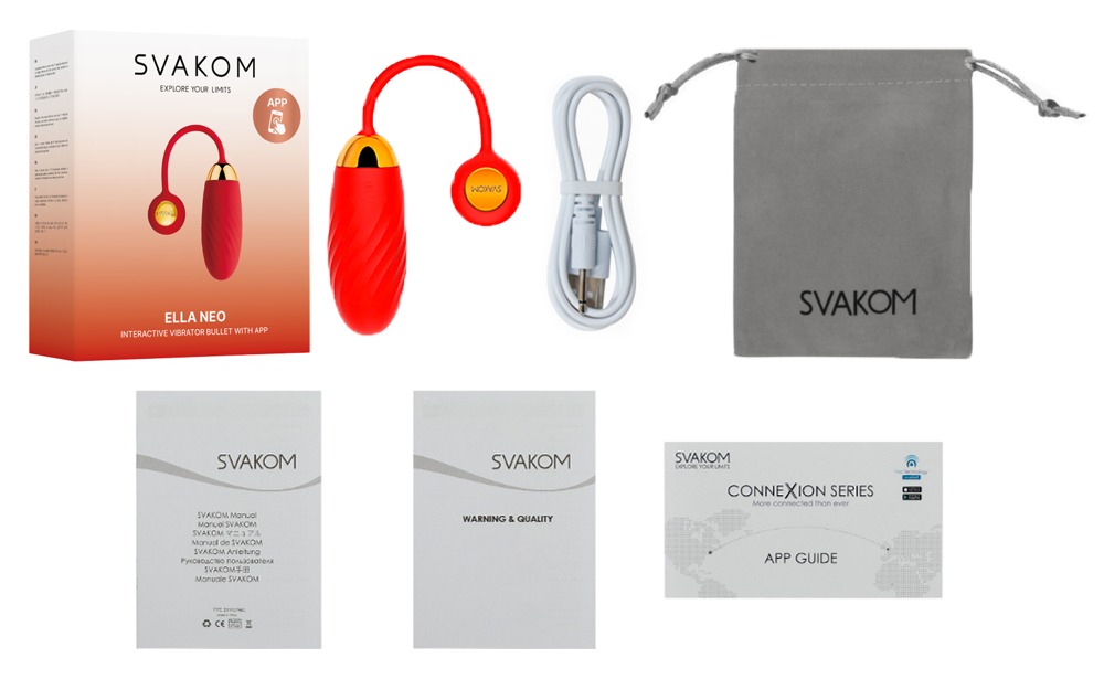 - Lieferumfang: 1 x Vibro-Ei Ella Neo von SVAKOM. Inklusive USB-Kabel und Aufbewahrungsbeutel.