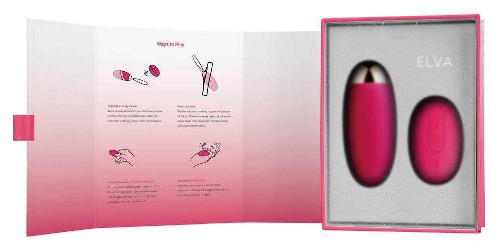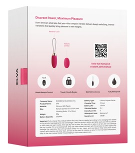 - Lieferumfang: 1 x Vibro-Ei Elva von SVAKOM. Inklusive Aufbewahrungsbeutel, USB-Ladekabel und Batterien für die Fernbedienung.